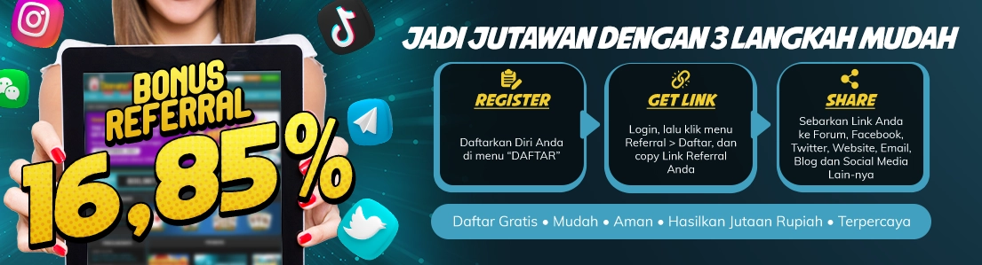 Referral system tidak dipungut biaya apapun. Hanya dengan modal online saja setelah itu Anda hanya tinggal mengecek keuntungan Anda yang dapat dilihatsecara online kapanpun dan dimanapun. Register sekarang juga dan referensikan Link referral Anda.